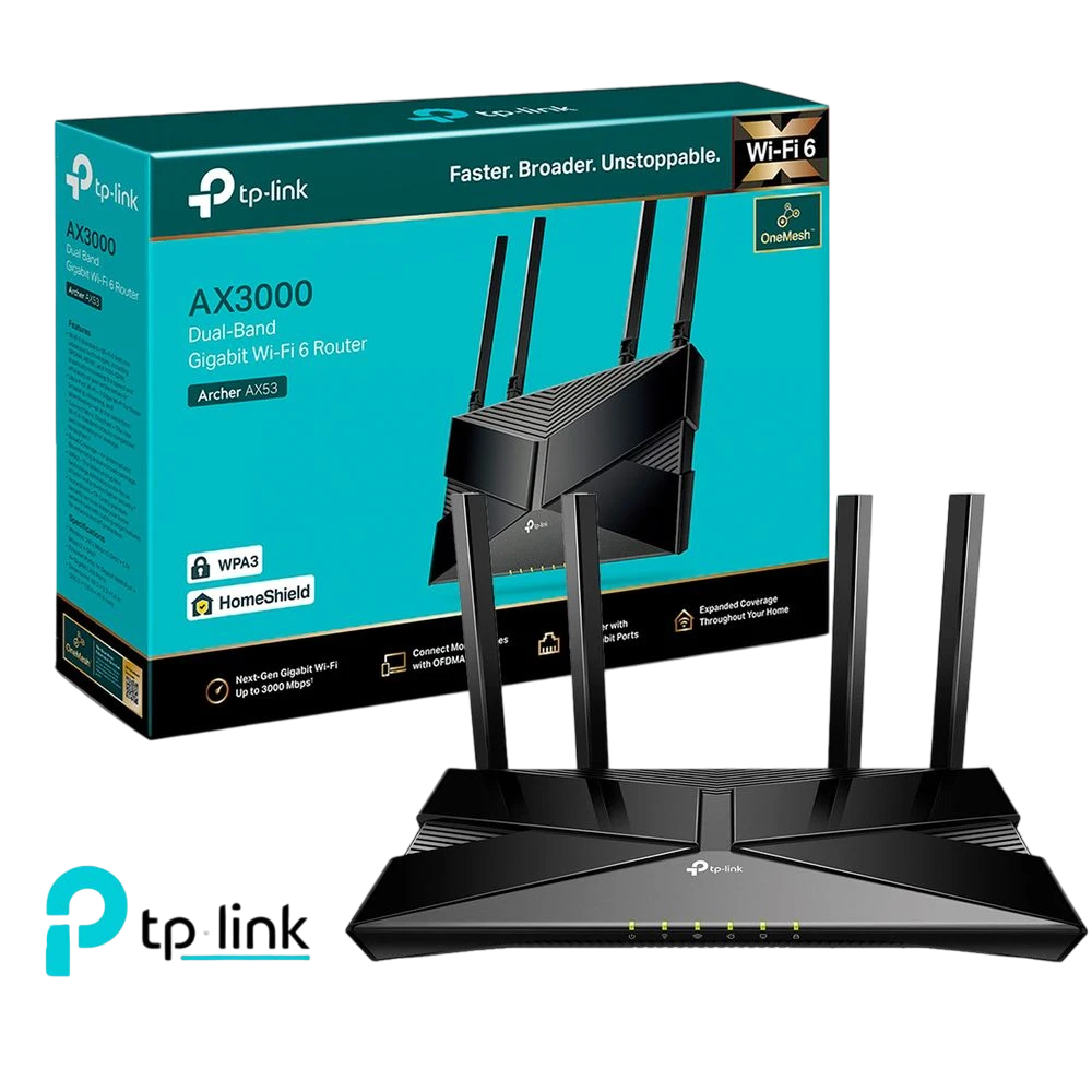 Le TP-Link AX3000 est un routeur Wi-Fi 6 bi-bande offrant des vitesses allant jusqu’à 2402 Mbps sur la bande 5 GHz et 574 Mbps sur la bande 2.4 GHz. Il prend en charge les technologies OFDMA et MU-MIMO pour une connectivité efficace avec plusieurs appareils simultanément. Doté de 4 ports LAN Gigabit, d’un port WAN Gigabit et d’un port USB 3.0, il assure une connectivité filaire rapide et une gestion aisée via l’application TP-Link Tether.